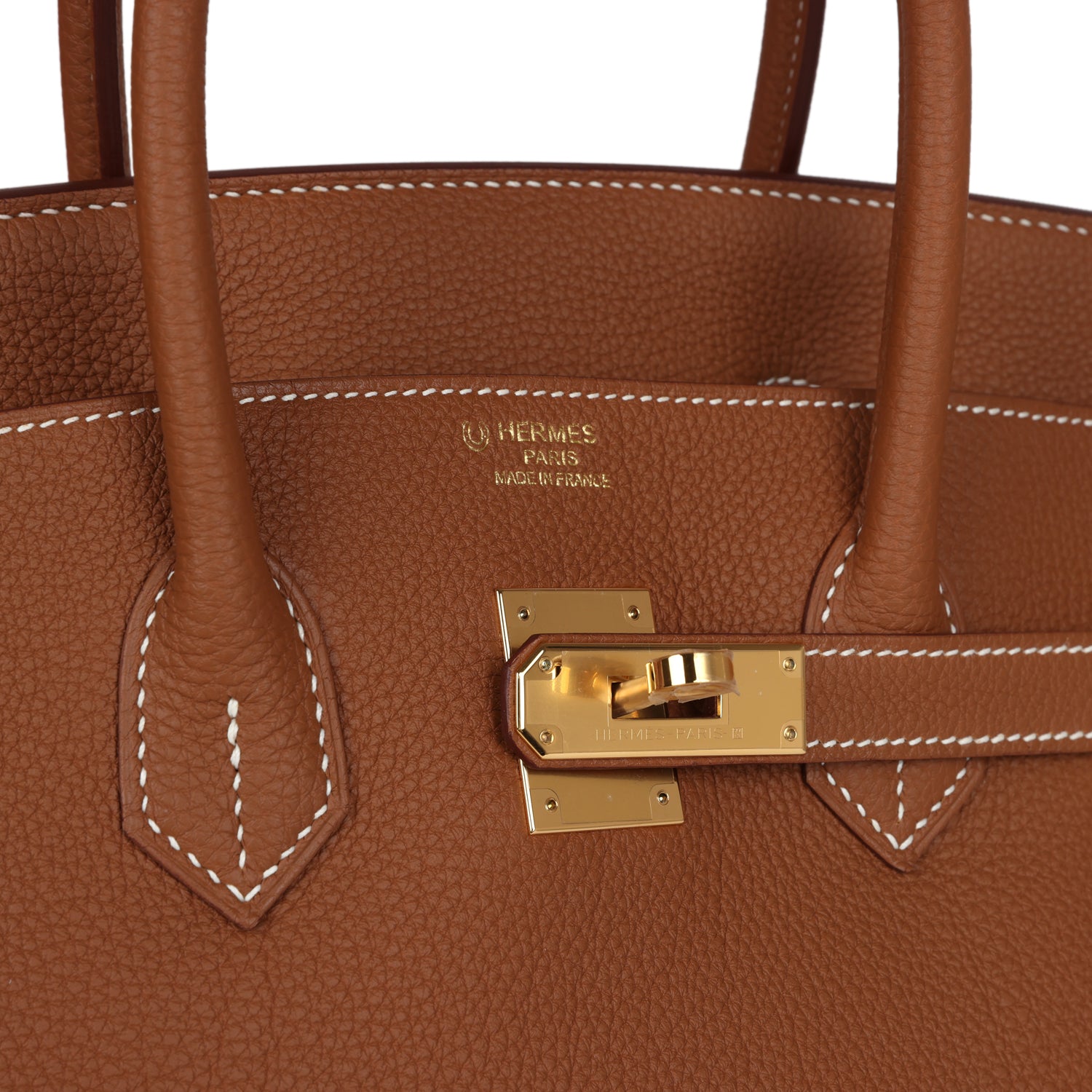 This Special Order Birkin is in Gold togo leather with gold hardware and has contrast stitching, two straps with front toggle closure, clochette with lock and two keys and double rolled handles.