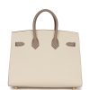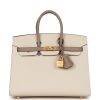 Hermès Special Order (HSS) Birkin Sellier 25 Craie and Gris Asphalte Epsom Brushed Gold Hardware