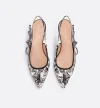 The J’Adior slingback flat is a prime example of Dior’s savoir-faire. The white and black embroidered cotton style showcases the season’s signature Plan de Paris motif, inspired by House archives and centered around Dior’s historic address on Avenue Montaigne. The two-tone embroidered J’Adior signature ribbon is embellished with an elegant bow. The slingback flat will lend a refined and sophisticated touch and can be paired with other Plan de Paris creations from the collection.