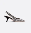 The J'Adior slingback pump is a prime example of Dior's savoir-faire. The white and black embroidered cotton style showcases the season's signature Plan de Paris motif, inspired by House archives and centered around Dior's historic address on Avenue Montaigne. The J'Adior signature embroidered ribbon, bow and 6.5 cm (2.5) comma heel complete the elegant shoe, which can be paired with other Plan de Paris creations.