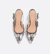The J’Adior slingback pump is a prime example of Dior’s savoir-faire. The white and black embroidered cotton style showcases the season’s signature Plan de Paris motif, inspired by House archives and centered around Dior’s historic address on Avenue Montaigne. The J’Adior signature embroidered ribbon, bow and 6.5 cm (2.5) comma heel complete the elegant shoe, which can be paired with other Plan de Paris creations.