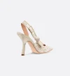 The J'Adior Slingback Pump is a prime example of Dior's savoir-faire. Crafted with passion in Christian Dior's Italian ateliers, the jacquard design features the white and gold-tone Millefiori motif by Pietro Ruffo, showcasing delicate, elegant flowers. The J'Adior two-tone embroidered ribbon with gold-tone metallic thread, embellished with a flat bow, along with a 10-cm (4-inch) comma heel make this a sophisticated and refined creation. The shoe can be paired with other pieces from the Millefiori collection.