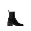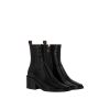 One of the key styles at Nicolas Ghesquière’s 10th anniversary show for Louis Vuitton, the Jazz ankle boot mixes masculine and feminine codes to elegant effect. This version comes in supple lambskin with delicate folded detailing. This model is characterized by its rounded toe and block heel, which is signed with an LV Circle stud.