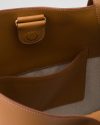 This oversized tote bag has sophisticated allure and a pragmatic character. The style, characterized by a large, convenient opening, has sleek, minimalist lines emphasized by the buttery feel of soft grain leather. The accessory is enriched with adjustable leather handles accented with the sleek, modern detail of metal buckles with an iconic design. The lettering logo embossed on the front completes the look with an elegant, refined note.