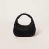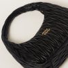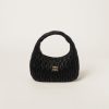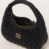 The Wander bag, reinterpreted season after season, has become an iconic accessory of Miu Miu collections. $ Made in matelassé nappa leather, the bag is characterized by the sophisticated, three-dimensional created by the fine workmanship. The hobo shape, blending retro inspirations and contemporary elegance, becomes a new synonym of modern femininity.