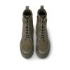 An icon of the Louis Vuitton shoe collection, the Laureate platform desert boot is reworked in a canvas version with calf-leather trim and laces. Its lightweight platform outsole is decorated with a row of LV Initials, referencing the lozine edging of the historic trunks. This model is signed with an oversized LV Initials logo on the side.