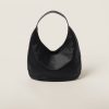 A sleek design, cosmopolitan charm, and distinctive details meet in this new leather hobo bag. The lettering logo on the front adds an iconic touch to the accessory while the Re-Nylon lining with zipper pocket completes the style with a refined detail.