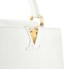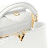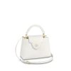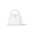 Fashioned from full-grain Taurillon leather, the now-classic Capucines BB handbag displays a host of House signatures: leather-wrapped LV Initials, jewel-like handle mounts inspired by historic trunks, and a distinctive flap with a Monogram Flower motif. Timelessly elegant, this charming model can be carried by hand or worn cross-body on its detachable strap. First launched in 2013, the Capucines is named for the Parisian street where Louis Vuitton first opened shop, in 1854.