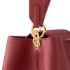 The Capucines GM Souple reimagines one of the House's most iconic designs in an elevated silhouette and rich earthy color. This edition is crafted from smooth calfskin embellished with elegant gold-toned hardware, including a signature LV motif. The double-carry style opens to reveal an organized interior with several pockets and is generously sized to store A4 documents, a notebook and travel essentials. Carry it by hand, strung over one shoulder, or attach a shoulder strap to go hands-free.