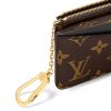 The Card Holder Recto Verso combines Monogram canvas with smart leather trim. It offers an envelope-style pocket at the front, an in-between pocket for folded bills, and a zipped compartment with a wide, L-shaped opening for coins. At the back, three card slots complete this ingenious, all-in-one accessory, which can be hooked onto a bag or belt.