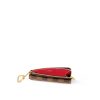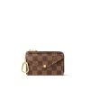The ingenious Card Holder Recto Verso pairs Damier Ebene canvas with colored leather trim. It has a flap pocket with a press-stud at the front, an in-between pocket for folded bills, and a zipped compartment with a wide, L-shaped opening at the back. Three card slots complete this all-in-one accessory, which can be hooked onto a bag or belt.