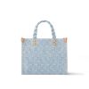 Made from Monogram Denim, the cute little LetGo PM tote is inspired by the design of the OnTheGo. The stonewashed colorway and braided handles make this perfect for summer. Large enough for a wallet and phone, its supple design makes it a pleasure to carry. The riveted corners are in cowhide leather.
