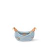The Loop is made from Monogram Denim, a stylishly fresh take on the ultimate summer fabric. The bag’s half-moon shape is highlighted by the leather corners. A removable and adjustable leather strap and a detachable gold-color chain give carry options. The zipped front pocket gives access to essentials.