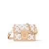Part of the Nautical capsule, this Mini Dauphine is adorned with multicolor LVs and Monogram Flowers. The jacquard motif is created through a weave using 66 different-colored threads to produce a delicate gradient of color. The fabric then receives a protective coating. The bag features a braided chain and a leather strap – both detachable.