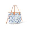 The Neverfull MM tote is made from Monogram Tiles canvas with leather trim along the top of the bag and on the handles. The Monogram pattern has a watercolor aspect and features the LV Circle in the center. It comes with a zipped pouch, with a complementary print, that can be removed and used separately.