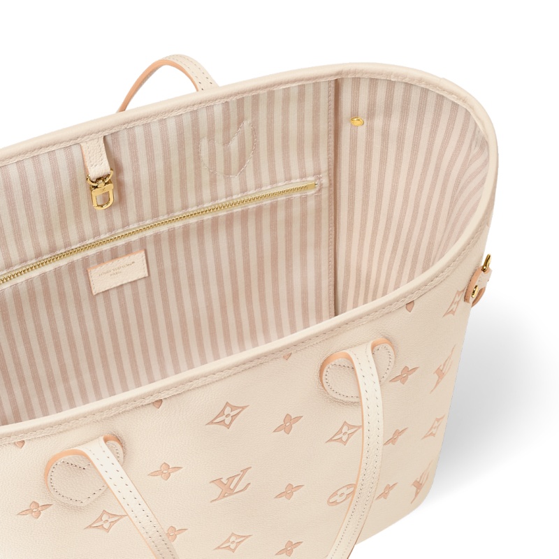 Showcasing the House’s iconic Monogram Empreinte leather with an updated tonal outline, this version of the Neverfull MM handbag is both functional and sophisticated. Generously sized to store a laptop as well as other everyday items, it comes with a removable textile pouch in a contrasting print. The gold-toned hardware lends a refined finish.