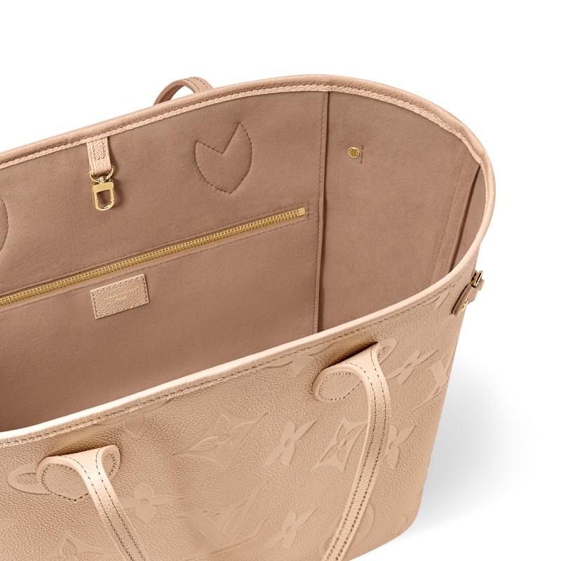 Perfect for city commutes and beyond, the iconic Neverfull MM tote unites timeless design with heritage details. This version is crafted from cowhide leather patterned with the House's Monogram and has adjustable side laces to cinch the profile. It is is capacious enough to store a 13” laptop. Use the removable zipped pouch to keep smaller items organized.