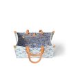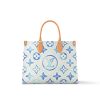 This OnTheGo MM tote is made from Monogram Tiles canvas, with its watercolor-style Monogram print and LV Circle centered on the bag. The two top handles, and concealed shoulder straps, are in cowhide leather, as are the four riveted corner tabs. This roomy bag can easily carry a laptop as well as other daily necessities.