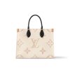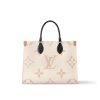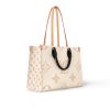 From the Cruise 24 collection comes this OnTheGo MM, a capacious tote crafted from new Monogram Dune canvas. The sand-inspired colorway gives a modern, effortless air to this versatile OnTheGo, which features two top handles in contrasting black leather and twin shoulder straps made from the Maison’s heritage natural cowhide. Golden hardware adds a gleaming flourish to the piece.