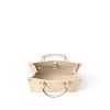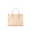 A soft cream-tone makes the Monogram Empreinte leather of this OnTheGo PM bag seem luminous. The LVs and Monogram Flowers embossed into the leather are perfectly complemented by the rectangular lines of this small tote. It can hold smaller essentials like an iPad Mini. Two rolled-leather top handles and a detachable strap give carry options.