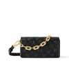 The Pochette Coussin is crafted from soft lambskin, which is embossed with the Monogram pattern to create a puffy effect. This on-trend bag has a petite, rectangular format and a flap closure, which opens to reveal a contrasting leather lining. It has an adjustable, removable shoulder strap, as well as the signature chunky chain of the Coussin line.