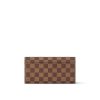 The Sarah wallet comes in Louis Vuitton’s historic Damier Ebene canvas, complemented by a grained-leather lining. This classic wallet combines a feminine look with a highly functional design, including two roomy compartments, a zipped coin pocket and numerous card slots. Its envelope-style flap is sealed with an engraved, gold-tone press-stud.