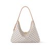 Part of the Damier Azur collection, this edition of the Slouchy PM is inspired by the elegant lifestyle of the French Riviera. The unique pattern is created using a heliogravure printing process and is complemented with sleek gold-toned hardware. Signature details include the natural leather name tag, which includes a padlock that symbolizes the House's heritage and craftsmanship.