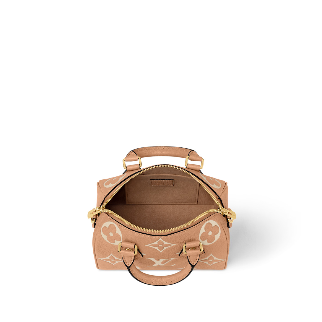 This edition of the Speedy Bandoulière 20 features the House’s iconic Monogram Empreinte leather in a chic neutral palette. It is designed with gleaming gold-toned hardware, including a signature padlock, and is topped with smooth turon handles. The compact shape holds enough space to store a smartphone, wallet and keys – and a couple of makeup items, too.