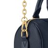 The Speedy 20 Bandoulière handbag is made from Monogram Empreinte leather in a soft pastel colorway. The bag’s unique shape is inspired by the House’s Speedy travel bag from the 1930s. A removable and adjustable chain-strap enables shoulder wear while the two top handles allow hand carry.