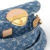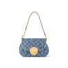 The Sunset handbag is made from Monogram Denim canvas and is adorned with the House's tuck lock. Creating Monogram Denim is a multi-step process. First the Monogram pattern is woven into the Global Organic Textile Standard-certified cotton which is then bleached. Once assembled, each bag is stonewashed to give it a unique aspect. The Sunset can also be styled for cross-body wear, thanks to an extra extension strap included with the piece.