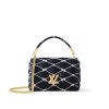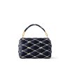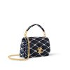 As part of the Nautical Collection, this GO-14 MM in padded lambskin is adorned with an embroidered-cotton rope motif, inspired by sailors’s knots. The removable and adjustable sliding chain and LV Twist lock, both in gold-color metal, bring a luxurious feel. In addition to the chain, there is a removable top handle.