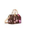 As part of the exclusive re-edition of the Louis Vuitton x Murakami collection, this Speedy Bandoulière 25 twists the House’s iconic Monogram coated canvas with celebratory Cherry Blossom motifs in the renowned artist’s vernacular playful style – including a removable Cherry Blossom bag charm. The elegant Toron top handles and removable leather strap are highlighted in natural cowhide leather, while a golden double zipper closure complete with padlock ensures personal items are secured.