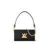With its elegant, elongated shape, the Twist West handbag offers a cool new perspective on the House icon. Fashioned from Epi leather in an array of modern hues, it is signed with the beautifully crafted LV Twist lock. Sized to fit essential belongings, the bag adapts to a variety of carry styles thanks to its removable strap and chain.