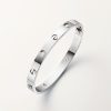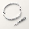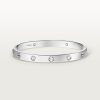 Product Description: LOVE bracelet 18K white gold (750/1000) Set with 4 brilliant-cut diamonds totaling 0.42 carats Width: 6.1 mm Oval bracelet composed of two rigid arcs which is worn on the wrist and removed using a specific screwdriver The closure is designed with two functional screws placed on either side of the bracelet: you will need help to open or close it To determine the size of your LOVE bracelet measure your wrist adding one centimeter to your size for a tighter fit or two centimeters for a looser fit