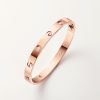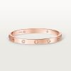 Product Description: LOVE bracelet 18K rose gold (750/1000) Set with 4 brilliant-cut diamonds totaling 0.42 carats Width: 6.1 mm Oval bracelet composed of two rigid arcs which is worn on the wrist and removed using a specific screwdriver The closure is designed with two functional screws placed on either side of the bracelet: you will need help to open or close it To determine the size of your LOVE bracelet measure your wrist adding one centimeter to your size for a tighter fit or two centimeters for a looser fit