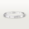 Product Description: LOVE bracelet White gold 750/1000 Set with 10 brilliant-cut diamonds totaling 0.96 carats Width: 6.1 mm Oval bracelet composed of two rigid arcs which is worn on the wrist and removed using a specific screwdriver The closure is designed with two functional screws placed on either side of the bracelet: you will need help to open or close it To determine the size of your LOVE bracelet measure your wrist adding one centimeter to your size for a tighter fit or two centimeters for a looser fit