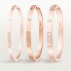 LOVE bracelet, medium model, 18K rose gold (750/1000), closure system with functional screw and hinge. Comes with a screwdriver. Width 4.8 mm. Created in New York in 1969, the LOVE bracelet is a jewelry design icon: a close fitting, oval bracelet composed of two rigid arcs, which is worn on the wrist and removed using a special screwdriver.