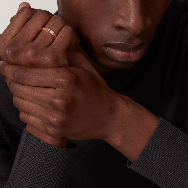 Product Description: LOVE wedding band Rose gold (750/1000) Set with 8 brilliant-cut diamond totaling 0.19 carats Width: 4 mm (for size 52)