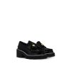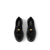 The LV Beaubourg loafer is a fashion-forward reinterpretation of the classic penny loafer. Crafted from glazed calf leather, it playfully references the origins of the style with a Louis Vuitton penny inside the characteristic cutout on the strap. This model comes on a chunky platform outsole in lightweight micro.