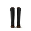 The LV Biker high boot in smooth calf leather takes inspiration from both biker boots and riding boots. The sleek upper is complemented by a gusset detail and a strap in Monogram canvas, which is adjusted with a gold-toned buckle. This model is finished with a robust leather and rubber outsole.