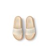 The LV Bliss comfort mule is a casual style distinguished by its wide front strap in canvas printed with an oversized Louis Vuitton signature. Natural leather edging around the outsole is a refined detail of this design, which also features a comfortable, padded insole. It is finished with a supple and lightweight rubber outsole.