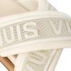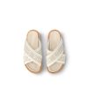 The LV Bliss comfort mule is a relaxed style with two crossover straps in canvas printed with the Louis Vuitton signature. The natural leather edging around the outsole adds a touch of refinement. This model is finished with a textured rubber outsole with the LV Initials and Louis Vuitton signature.