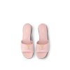The LV Capri flat mule is an elegant, timeless style in smooth calf leather. It is distinguished by its wide front strap, which is embellished with a partially leather-covered LV Initials accessory inspired by the emblematic Capucines bag. This model is finished with a leather-covered insole and a durable leather outsole.