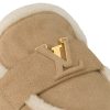 The LV Capri open-back loafer is reinterpreted in velvety suede calf leather with a soft shearling lining. Shearling edging on the upper adds to the refinement of this design, which is notable for its partially leather-covered LV Initials accessory, inspired by the iconic Capucines bag. A fine leather outsole completes this stylish, slip-on model.