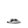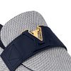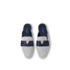This summery edition of the LV Capri open-back loafer comes in bicolor cotton canvas with a subtle nautical feel. The upper is complemented by a leather strap with a partially leather-covered LV Initials accessory, referencing the iconic Capucines bag. Effortlessly stylish, this slip-on model is finished with a fine leather outsole.