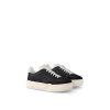 The LV Groovy platform sneaker comes in soft calf leather, which is debossed with Louis Vuitton’s iconic Monogram pattern. This model combines a Seventies-inspired upper with an oversized, elevated outsole. Key details include the Monogram Flower lace accessory, the natural leather trim at the back, and the specially designed Louis Vuitton signature on the tongue.