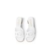The LV Isola mule has become one of Louis Vuitton’s emblematic styles. This version is crafted from smooth calf leather and comes on a low block heel, which is both elegant and easy to wear. This model is notable for the large LV Circle signature, cut out of the leather, which joins the straps on its upper.