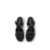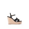 The LV Isola wedge sandal combines an upper in smooth calfskin with a comfortable braided-rope sole, which references the classic espadrille. The distinctive LV Circle motif, which is cut out of the upper, is the signature of the LV Isola line. This relaxed yet elegant model is fastened around the ankle with a gold-tone buckle.