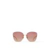 The precious LV Jewel Round Cat Eye sunglasses offer a glamorous way to wear the Louis Vuitton signature. Their rimless design features slim chain temples in radiant gold-toned metal with the LV Initials and Monogram Flowers embedded in the links. Monogram Flower studs on the faceted hand-polished lenses add an extra House touch.
