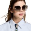 The LV Jewel Square sunglasses offer a precious, colorful signature look. Their on-trend rimless design combines delicately faceted hand-polished lenses with gold-tone metal temples in the form of chain links inset with the LV Initials and Monogram Flowers. With their outsized square shape, they add a tinge of glamour to any summer outfit.